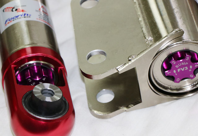 縮側15段可調是由針式閥門機構組,控制阻尼力量的輪出,在針式閥無干涉及低摩擦的特性,可以得到較優秀的微阻尼及慢速阻尼力,對於輪胎力量的建立有著明頭的双果。